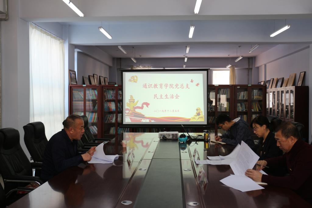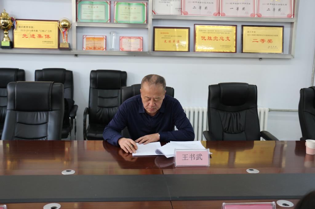 学院党总支书记苏丹同志主持专题民主生活会,黑河学院党委委员、宣传统战部长王书武同志到会指导。